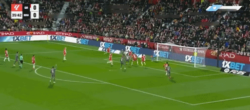 第34分钟,贝林厄姆假想攻势,左路内切之后回敲,迪亚斯弧顶处离门20米外远射,直取球门右上角,加扎尼加飞身将球拒之门外。2分钟之后,又是迪亚斯左路突破下底倒三角传球,赫罗纳后卫挡了一下,贝林厄姆跟上凌空爆射,皮球穿裆之后应声上钩,皇马冲破僵局,1-0!