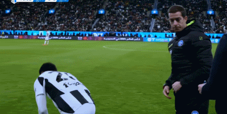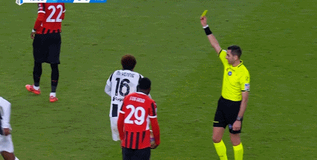 第45+1分钟,麦肯尼死后踢倒本纳赛尔,主裁判出示黄牌