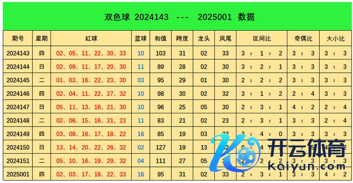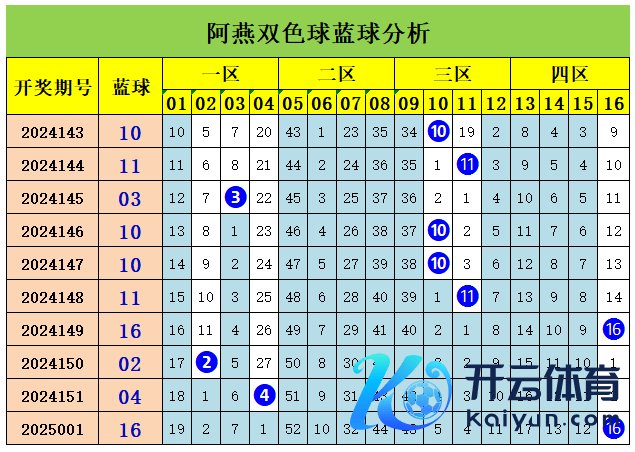 上期转头:双色球第2025001期开出奖号:红球02、03、17、18、22、33;蓝球16,其中红球三区比为2:3:1,奇偶比3:3,大小比为4:2,蓝球开出1路号码16。